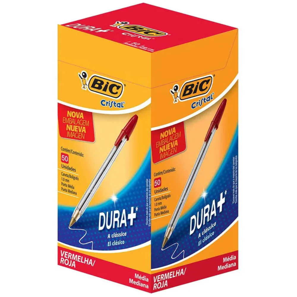 A caneta esferográfica BIC Cristal vermelha é referência em qualidade, durabilidade e escrita macia. Ideal para uso em escritórios, empresas, escolas e no dia a dia.